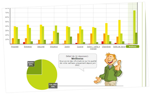 When we launched this service, 53.76% of the respondents found the display to be fairly clear and 43.35% found it to be very clear. Only 0.58% found the display not to be clear at all. 43.93% of the respondents to our survey indicated that this display would help them a lot in choosing a holiday home. 41.04% indicated that the display would help them reasonably. -