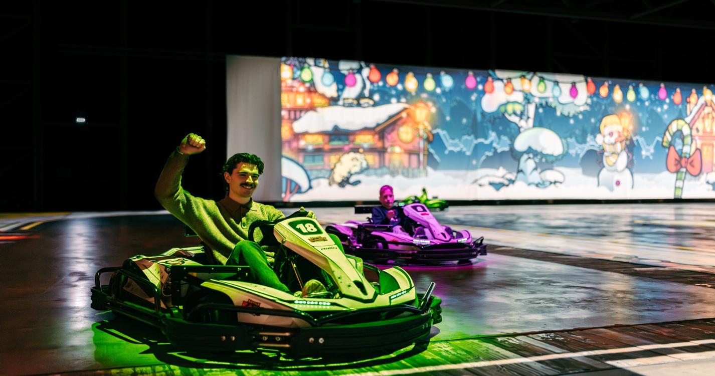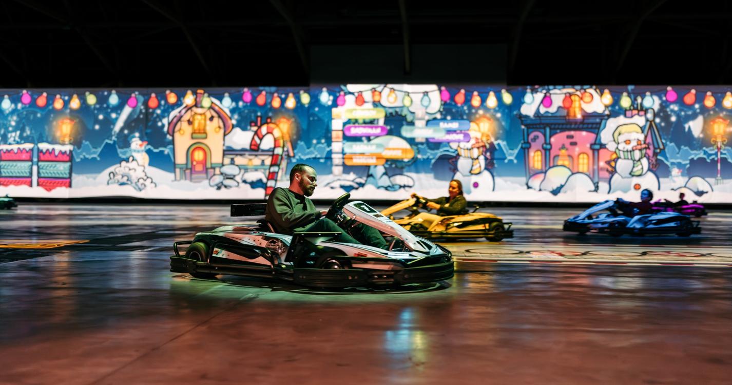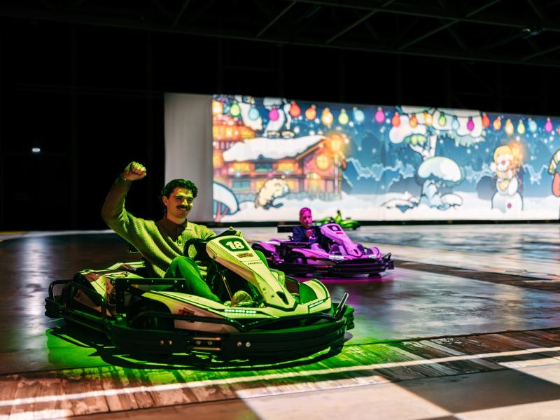 It's go-karting because you drive an actual electric go-kart with the real thrill of speed. As a little extra, the go-karts are smart, so a helmet isn’t necessary. In this way, you have the thrill of speed and the freedom of your hair blowing in the wind!