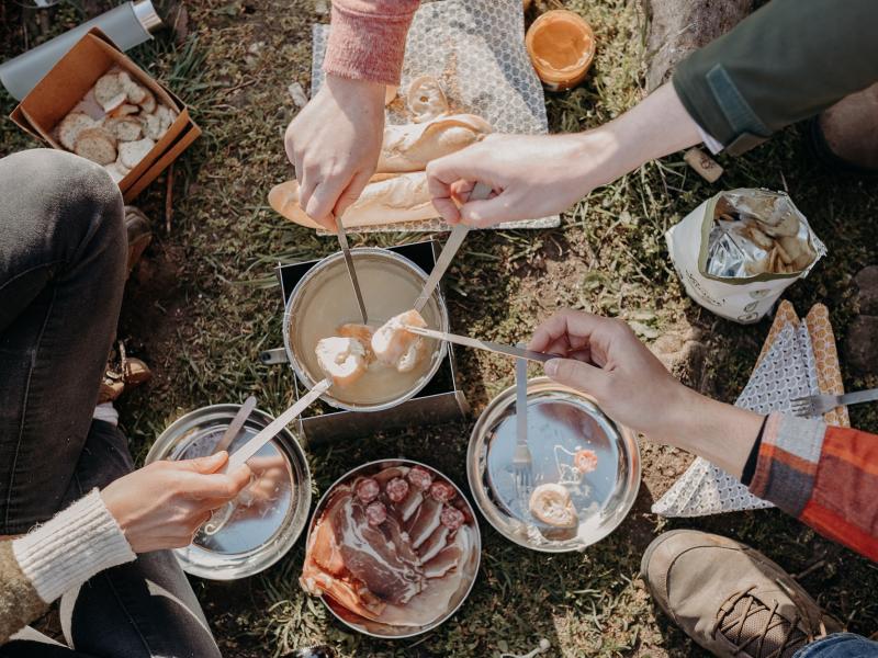 The concept combines a walk in the untouched nature of the Namur province with a genuine cheese fondue! In the morning, you'll receive a map guiding you on a lovely walk, along with a backpack containing a fondue set, cheese of course, an aperitif, snacks, drinks, and dessert. Two days in advance, you'll have received the gpx file of your hike.