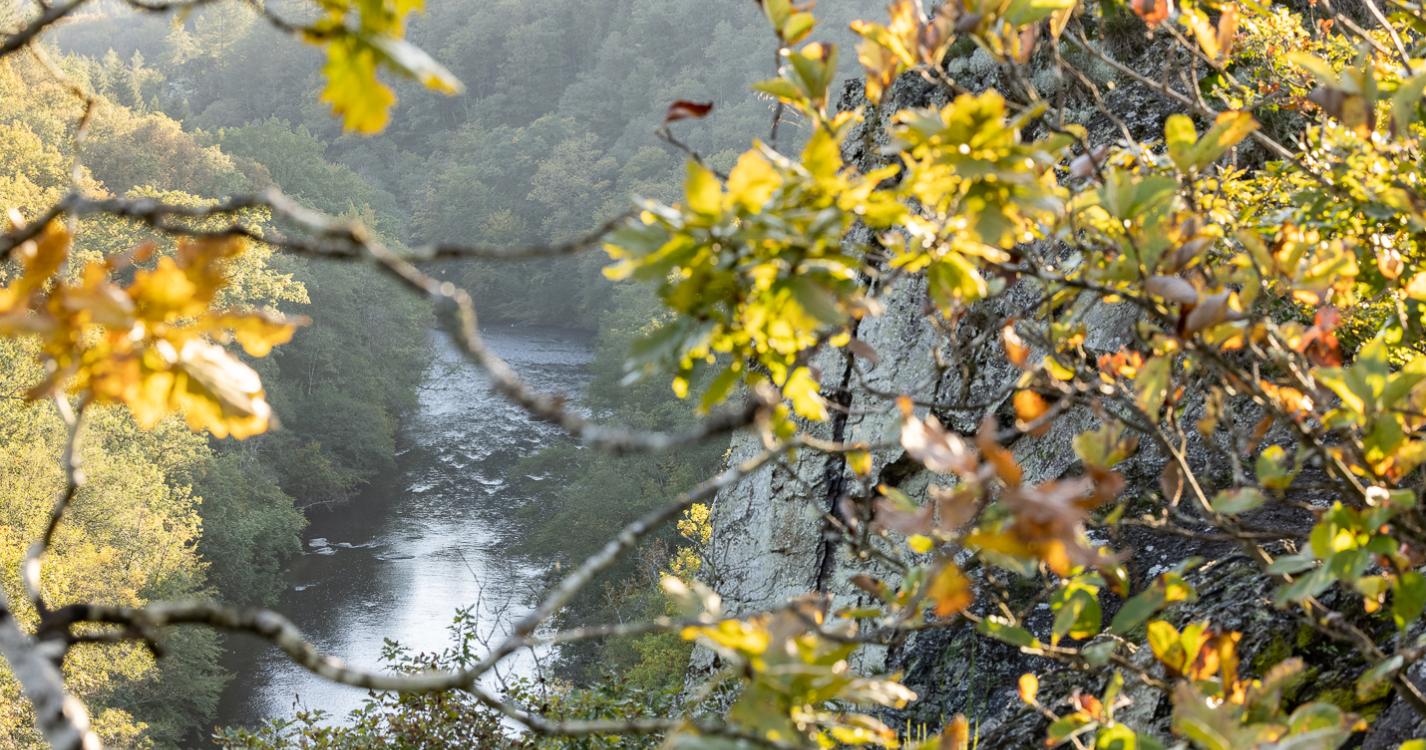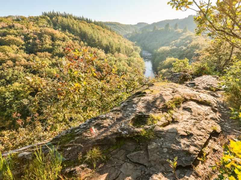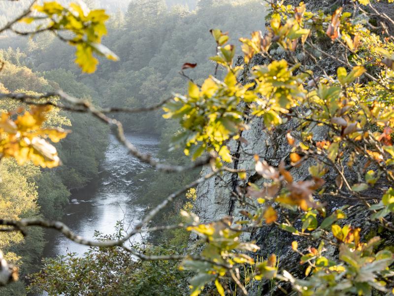 Whoever said Belgium was a flat country? Le Hérou proves, in any case, that you can find superb views here and there is no doubt that this one, in the Deux Ourthes nature park in the heart of the Ardennes, offers one of the most beautiful panoramas in Belgium. It’s this rocky cliff, impressive both for its height (you stand 80 to 90 metres above the Ourthe) and for its shape (the rock face being almost completely vertical), that makes the site so phenomenal. You can see how the elements have worked tirelessly in an age-old battle to make it what it is today.