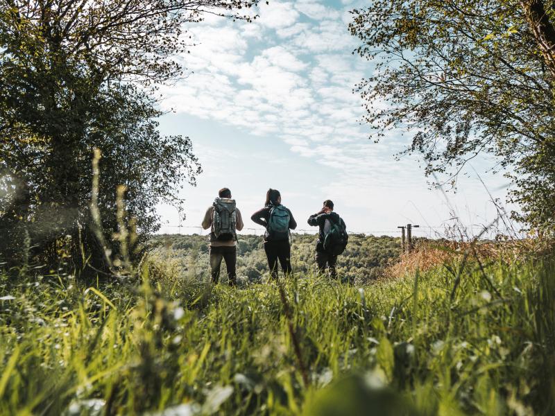 This short walk, which departs from Sainte-Colombe church in Soulme, crosses a wooded area to the south of the village. A sign dating from the German occupation during World War II still hangs on the gable of a former farmhouse, which forms the corner of Rue Désiré Mathieu and the path that leads to Hamoir Mill. The walk passes close to the former Falize quarrying site, which was used to construct the village itself. There were also pastures for goats and sheep on the limestone lawns. The village, which is listed as one of the Most Beautiful Villages of Wallonia, has retained its traditional architecture, the source of its charm. The Romanesque Sainte-Colombe church was built from limestone rubble during the 11th century and is surrounded by the cemetery walls. These are bordered by a stunning row of large chestnut trees.