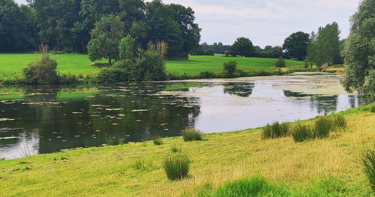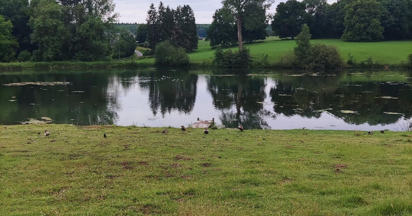 Longez les étangs (en les laissant sur votre gauche).