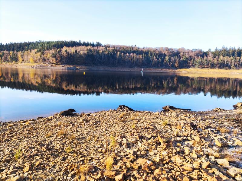 Lorsque vous avez le barrage dans le dos et la tour devant vous, prenez le petit chemin à droite et continuez 100 mètres.