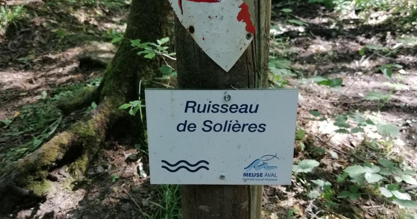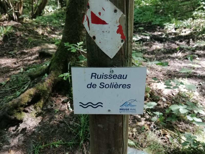 A la sortie du parking, marchez 200 mètres. Après le petit pont, tournez à gauche. Marchez le long de la Solières. Lorsque vous arriverez devant « La poudrerie », prenez à gauche. Vous arriverez dans la forêt, à la première fourche, prenez à gauche, le chemin monte, mais de manière très soft. A la sortie du bois, c’est un sentier au milieu des champs qui vous accueillera. Vous arriverez sur une route asphaltée et vous descendrez la rue de droite. Vous passerez devant une ferme et rentrerez à nouveau dans la forêt. Continuez votre promenade, vous traverserez la rivière et arriverez sur un plus grand chemin, traversez-le et prenez le petit sentier qui est un petit peu plus bas, juste en face. Marchez 500 mètres et prenez à droite à la fourche. Passez au dessus de la Solières grâce à un petit pont de fortune. Directement après, prenez le qui se trouve en aval et longez la Solières. Des grottes se trouvent sur votre droite, mais elles ne sont accessibles qu’avec un spéléologue. Une pause s’impose, un petit banc se trouve sur votre gauche. Après la barrière qui indique que les véhicules ne peuvent pas circuler, descendez sur la droite et vous arriverez à votre point de départ.