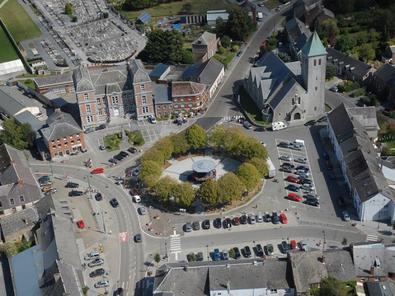 The walk starts at the very heart of Momignies, the capital of the municipality, in front of the Administration Communale (local authorities' building), a Renaissance-style building erected in the late 19th c.