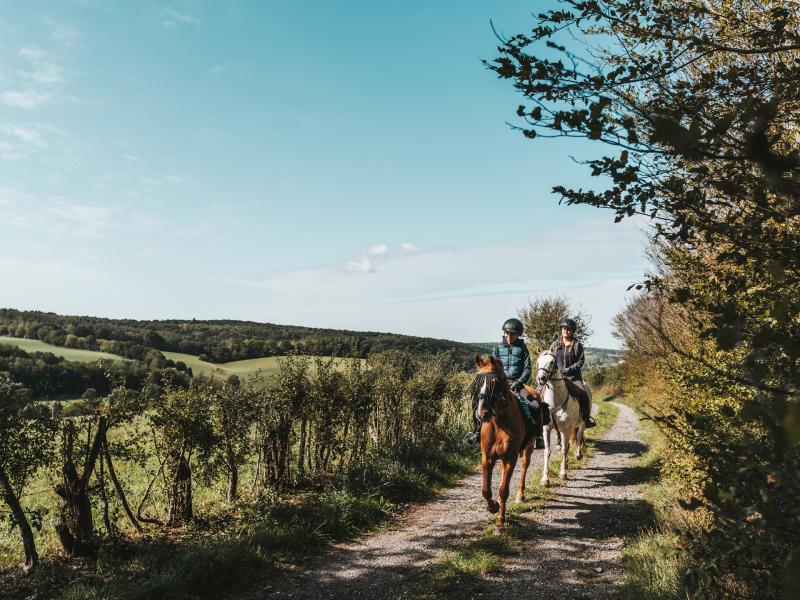 This 25-kilometre equestrian itinerary begins in Montbliart, the smallest and hilliest village in Sivry-Rance, and offers exceptional views and diverse landscapes. This route allows you to discover the village as a whole, as well as a wooded section of the municipality of Chimay. Discover the small chapel made from local blue stone, with its red Rance-marble alcove. After passing through the woods, admire an expanse of water at the pond by the mill, as well as a lovely view of the village of Rance. You will find Bois Massart forest at the Ostennes ponds – which were formerly a forge and furnace. There, you’ll find the arbre des quatre frères. After a quick trip to Eppe-Sauvage in France, return to the Bois de Bruyère forest and the village of Montbliart.