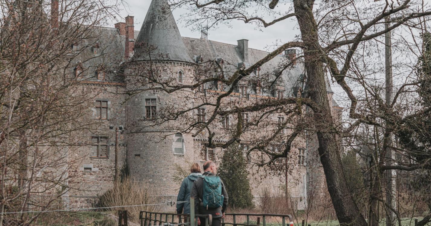 This walk starts in the square in Cour-sur-Heure and alternates between fields and forests, with a few ups and downs. The Eau d’Heure valley forms a basin and offers wonderful views of the hilly landscapes. Check out the old lime kilns, the walls of which are still visible. Old wagons that were used for the kilns are a testament to the past, especially in the square. In the high grounds of Cour-sur-Heure, cross the woods to reach an opening onto fields and the railway line. The walk then continues downhill and runs along the water to the gorgeous Castle of Ham-sur-Heure, its gardens, Saint Martin’s Church and Saint Roch's chapel. The return trip passes through open fields. In Cour-sur-Heure, check out the small, winding streets with their typical farms and houses, as well as the castle, which is flanked by magnificent towers.