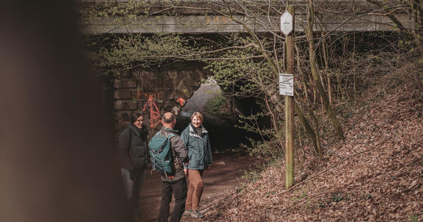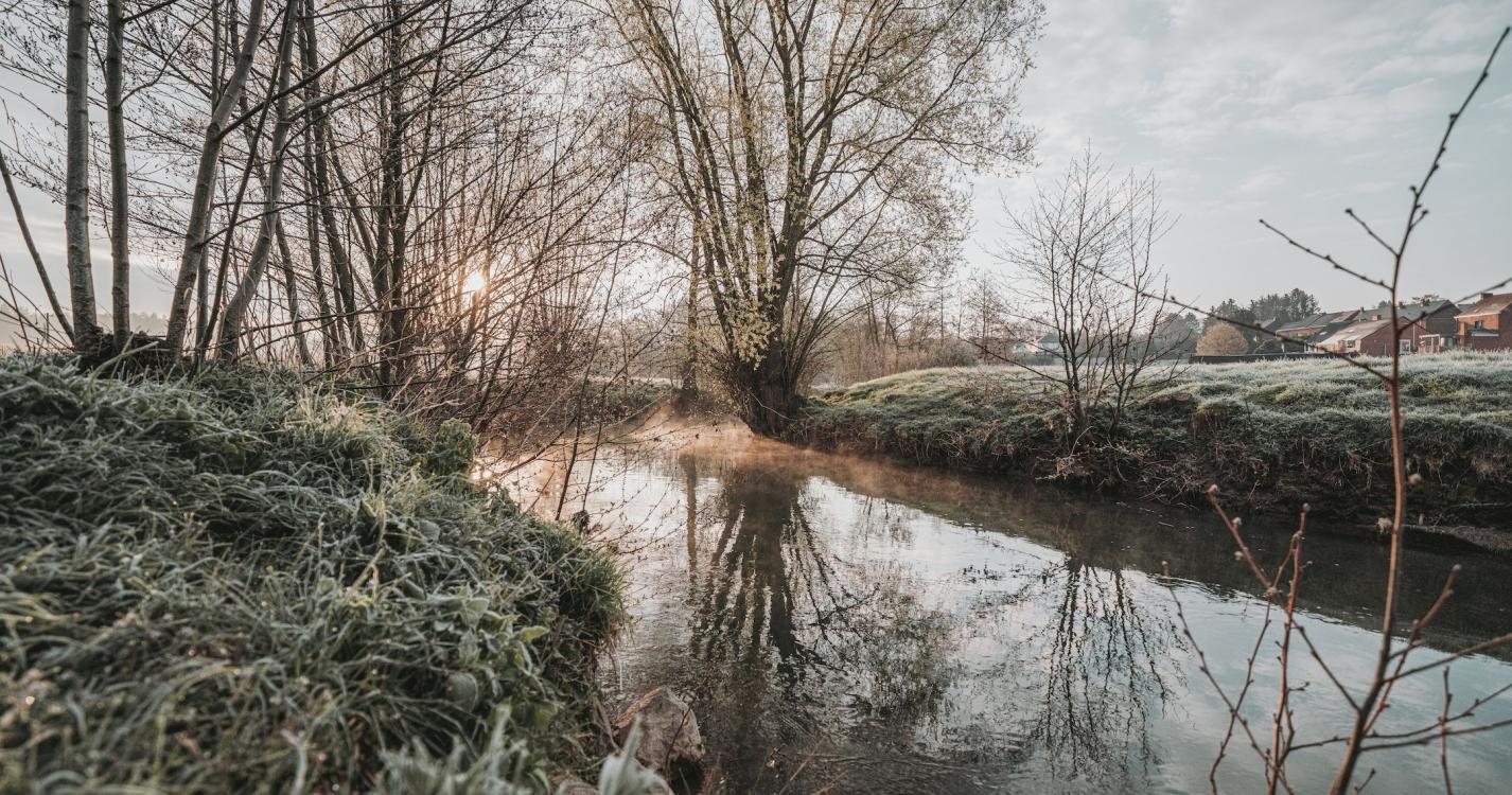 The route immerses you in the heart of the Eau d'Heure valley in Ham-sur-Heure, where the Saint Roch procession takes place each year. This is one of many folkloric marches in the Entre-Sambre-Et-Meuse region and is listed by UNESCO as intangible cultural heritage. The route begins in a spot known as ‘La Praie’. The walk runs along the water and plunges into the woods at Beignée. After the railway line, the walk returns via the streets of the village, where a former quarry and, later, in 1924, a glassworks specialising in hollow glass, once stood.