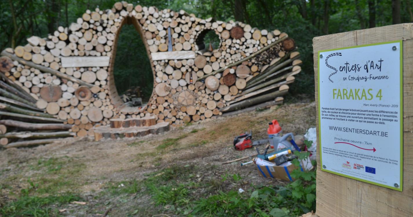 Découverte de 3 œuvres de Land'Art: Farakas de Marc Averly (Bois Henrard-Natoye), Recompose de El Paro-Mathieu Parot (Reuleau) et Levitas de Xavier Willot et Nicolas Bourguignon (Bois des Aunes à Braibant).