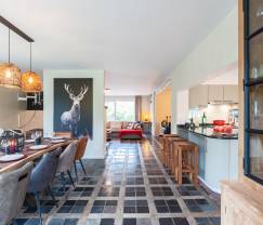 Dieses einladende Ferienhaus hoch über der Semois bietet Ihnen 5 Schlafzimmer mit jeweils eigenem Fernseher und eigenem Bad. Das Erdgeschoss mit einer voll ausgestatteten Bar, Tischkicker und Darts gibt den Ton vor: In diesem 3,5-Sterne-Ferienhaus steht Ihre Entspannung an oberster Stelle. Im lichtdurchfluteten ersten Stock befinden sich ein großes Wohnzimmer mit Ecksofa und Fernseher, eine...