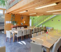 Een zeer ruim en goed onderhouden vakantiehuis voor een grote groep. Keuken is goed ingericht. De twee livings, haardvuur (bij slecht weer), sauna en oplaadstation voor de wagen zijn een grote meerwaarde. Ook de lift, voor mensen die moeilijk te been zijn of in rolstoel zitten, is een grote meerwaarde. De kamers zijn ruim alsook het sanitair. Met een groep van 27 met leeftijden tussen 11 jaar en 77 jaar was dit vakantiehuis een ideale locatie. Mooie omgeving om in te wandelen. Wij komen terug!