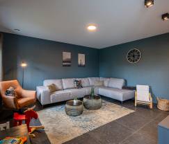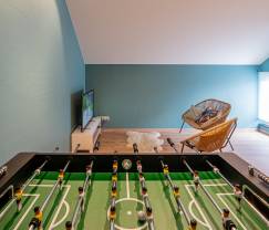 Das Haus verfügt über 3 geräumige Schlafzimmer und 3 moderne Badezimmer, was ausreichend Privatsphäre und Komfort garantiert. Für die Kleinsten gibt es ein Babybett und einen Kinderstuhl. Die Entspannungsmöglichkeiten sind endlos: genießen Sie den Jacuzzi im Freien, entspannen Sie in der Sauna drinnen oder spielen Sie eine Partie Tischfußball im Spielzimmer im obersten Stockwerk. Der Außenbereich ist ebenfalls gut ausgestattet mit einer Privatterrasse, einem Privatgarten und einer Schaukel und einer Rutsche.