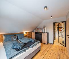 Das Apartment verfügt über 2 geräumige Schlafzimmer und 2 luxuriöse Badezimmer, sodass Sie während Ihres Aufenthalts allen Komfort haben. Für die ultimative Entspannung können Sie die Infrarotkabine und den Whirlpool nutzen. Stellen Sie sich vor, Sie kehren nach einem abenteuerlichen Tag in Ihren eigenen privaten Entspannungsbereich zurück, wo Sie die Wärme der Sauna und die Ruhe des Loungebereichs genießen können.