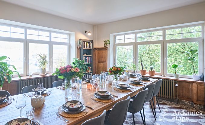 Willkommen in dieser wunderschönen Villa in Anhée, ideal für einen unvergesslichen und luxuriösen Urlaub mit Familie und/oder Freunden. Gelegen im idyllischen Tal der Molignée, bietet diese Villa einen atemberaubenden Blick auf den Fluss, der am Rande des Gartens fließt. Erbaut im Jahr 1942, strahlt das Haus einen zeitgenössischen Charme aus, der perfekt mit modernem Komfort harmoniert.