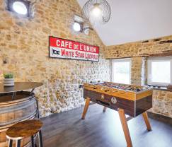 Nous avions loué ce gîte afin de fêter la promotion d'un ami. Tout était excellent, de la remise des clés au suivi par après, de même que le guide préparé afin de pouvoir nous occuper dans la région tout au long de ce week-end. En ce qui concerne le logement, tout était parfait de A à Z: cuisine suréquipée, chambres magnifiques, coin détente magnifique (Kicker, jeu de fléchettes, petite table/bar). Absolument parfait sur toute la ligne!