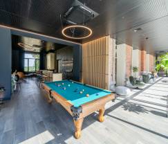 Genießen Sie das Hallenbad, die Sauna, Whirlpool und Hamam für ultimative Entspannung. Für Spiel- und Unterhaltungsliebhaber gibt es einen Spielraum mit Billard und eine echte Bar, und außerdem noch einen Mehrzweckraum. Draußen können Sie einen Privatgarten mit einem Pétanqueplatz genießen. Für Elektrofahrzeuge gibt es eine Ladestation.