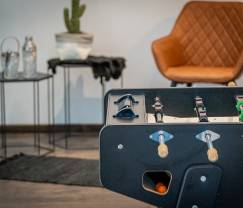 Das Wohnzimmer ist gemütlich eingerichtet und bietet ausreichend Platz zum gemeinsamen Entspannen. Dank des Vorhandenseins eines Spielbereichs gibt es viel Unterhaltung für Jung und Alt. Draußen genießt man einen großzügigen Privatgarten mit komfortablen Gartenmöbeln, wo man herrlich relaxen kann. Auf der Privatterrasse kann man gemütlich mit Holzkohle grillen, was für stimmungsvolle Abende unter den Sternen sorgt. Für die Sportlichen steht ein Tischfußballspiel zur Verfügung, ideal für einen unterhaltsamen Wettkampf mit der Gesellschaft. Außerdem gibt es eine Schaukel, perfekt für die Kinder zum Austoben.