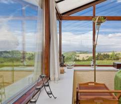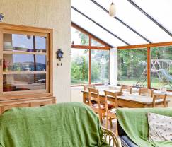 Bei Ihrem ersten Rundgang durch dieses Anwesen wird Ihnen sofort die herrliche Aussicht auffallen. Die Inneneinrichtung ist liebevoll gestaltet und weist große Glasfronten auf, damit Sie jederzeit die wunderschöne Umgebung genießen können. Hier kommt die ganze Familie auf ihre Kosten, denn die Kinder haben im Außenbereich einen schönen Spielplatz mit Rutsche und Schaukel, während die Erwachsenen an Sommerabenden sicher gerne den Grill nutzen werden. Das Haus verfügt über 3 hübsche und komfortable Schlafzimmer sowie über ein Badezimmer im Erdgeschoss. Der Wohnbereich ist lichtdurchflutet und sehr gemütlich, mit einer behaglichen Sitzecke neben dem Holzofen und dem Esszimmer im Wintergarten. Die Küche ist umfangreich ausgestattet, u.a. gibt es auch einen heißen Stein, wenn Sie im Winter einmal etwas Besonderes essen möchten. Auch ein Privatparkplatz mit 2 Stellplätzen steht zu Ihrer Verfügung.