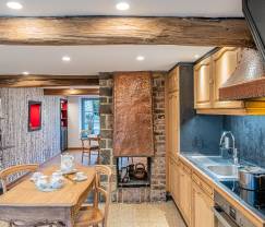 Außerdem gibt es einen gemütlichen, offenen Kamin, an dem Sie sich nach einem erlebnisreichen Wandertag ausruhen können, bevor Sie sich alle am Tisch des Esszimmers mit Fußboden aus regionalem Naturstein und freiliegenden Holzbalken zusammenfinden. Die Küche ist perfekt ausgestattet: Vitroceranherd mit 4 Kochfeldern, Backofen, Mikrowelle, Kühlschrank, Gefrierschrank, Nespresso-Kaffeemaschine, elektrischer Wasserkocher, Toaster und Obstpresse. Darüber hinaus verfügen Sie über eine Waschküche mit Geschirrspüler, Waschmaschine und Wäschetrockner. Ein Bügeleisen und ein Staubsauger stehen Ihnen ebenfalls zur Verfügung.
