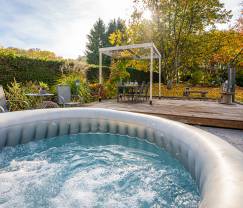 Super gezellig huisje, alles aanwezig wat nodig is. Heel grote tuin met verschillende zitjes en een vuurschaal. Perfekt omheind ook voor grote honden. Jacuzzi is overdekt zo dat je ook bij regen van de tuin kunt genieten. Ontvangst door eigenaresse was super. Goede uitleg van alles gehad en er zijn heel veel folders en informaties over de omgeving aanwezig. De streek is schitterend met veel beekjes en rivieren. Enige nadeel is de grote straat i.v.m. wandelen en lawaai.
