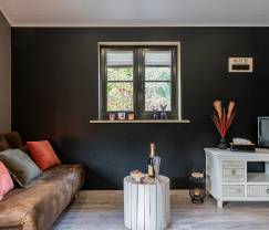 Dieses Ferienhaus mit Charme erwartet Sie mit einem Schlafzimmer und einem Badezimmer. Ausgehend vom Wohnzimmer gelangen Sie über die große Glas-Schiebetür direkt in den großen Garten und auf die reizvolle Terrasse mit aufblasbarem Whirlpool und Grill. Im Garten lädt Sie der private Teich zu angenehmen Momenten am Wasser ein. Die Küche ist voll ausgestattet, und das Wohnzimmer mit Kaminofen ist besonders gemütlich.