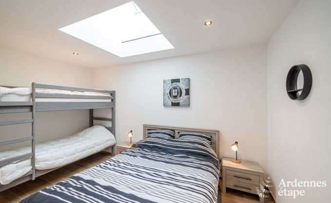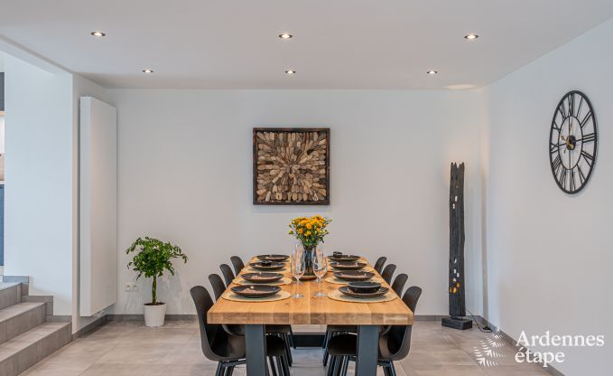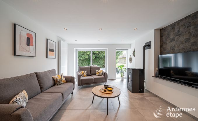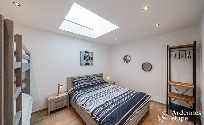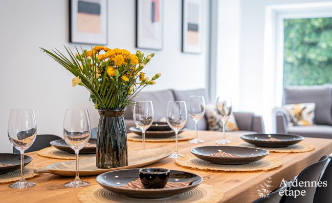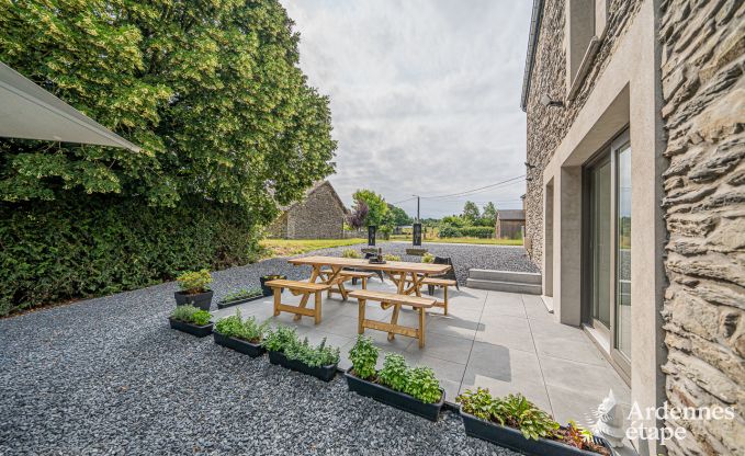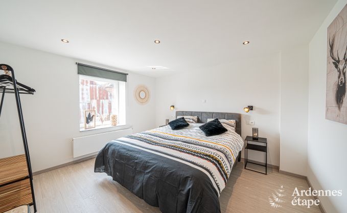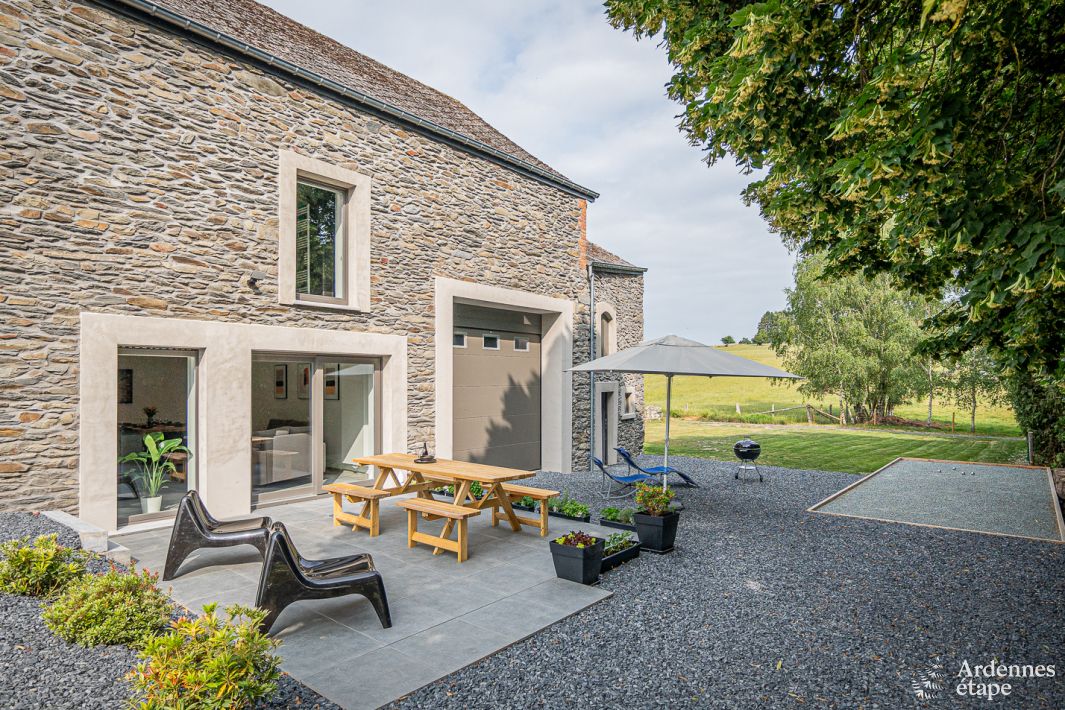 Mit seiner authentischen und lokalen Natursteinfassade macht dieses ehemalige Bauernhaus sofort bei Ihrer Ankunft klar: Hier wohnen Sie mitten in den Ardennen. Innen erinnert die Einrichtung in keiner Weise mehr an ihre Herkunft. Die schlichte Einrichtung ist geschmackvoll und zeitgemäß und bietet allen modernen Komfort. Sie verfügen über 3 Schlafzimmer, von denen eines sicher von den Kindern für das Etagenbett gewählt wird, und 2 Badezimmer. Essen kann sowohl in der perfekt ausgestatteten Küche als auch im gemütlichen Esszimmer. Im Wohnzimmer sorgt der Pelletkamin für zusätzliche Atmosphäre. Draußen können Sie auf Ihrer Terrasse grillen. Während die Kohlen aufwärmen, können Sie eine Partie Boule spielen. Ihr Hund ist willkommen und wird sich sicherlich im Garten austoben. Nach dem Radfahren können Sie Ihre Fahrräder in der sicheren Abstellmöglichkeit abstellen, wo Sie auch ein Reinigungsset für Ihr Stahlross finden.