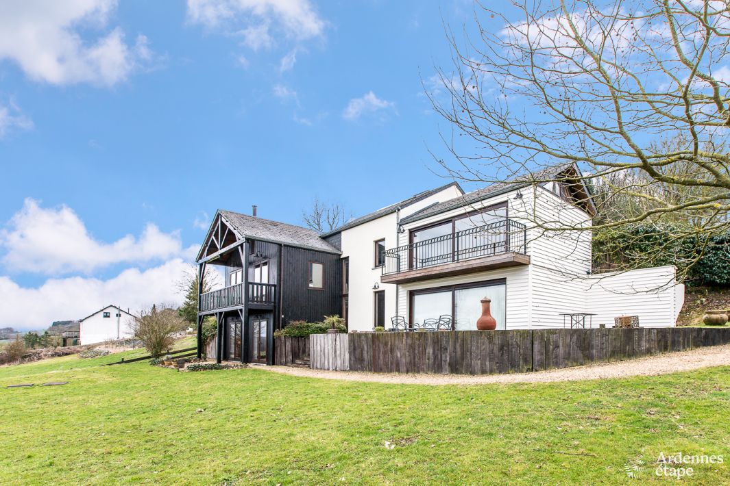 Sie werden sofort begeistert sein von der großzügigen Raumgestaltung dieses reizvollen Anwesens in idealer Lage und mit eindrucksvoller Dekoration. Der gemütliche und einladende Wohnbereich erwartet Sie mit raffinierten Täfelungen, freiliegenden Holzbalken und geschmackvoll kombinierten Materialien. Nach einem erlebnisreichen Tag werden Sie entspannende Momente in der Sauna oder ein Bad im Whirlpool besonders zu schätzen wissen. Die Kinder können sich im großen Garten nach Herzenslust austoben und ausgelassen spielen. Die schöne Terrasse mit Blick auf die Hügellandschaften der Umgebung bietet ausreichend Platz für die gesamte Urlaubsgemeinschaft. Machen Sie es sich zum Apéritif vor dem Kamin gemütlich, oder organisieren Sie einen Grillabend mit der ganzen Familie!