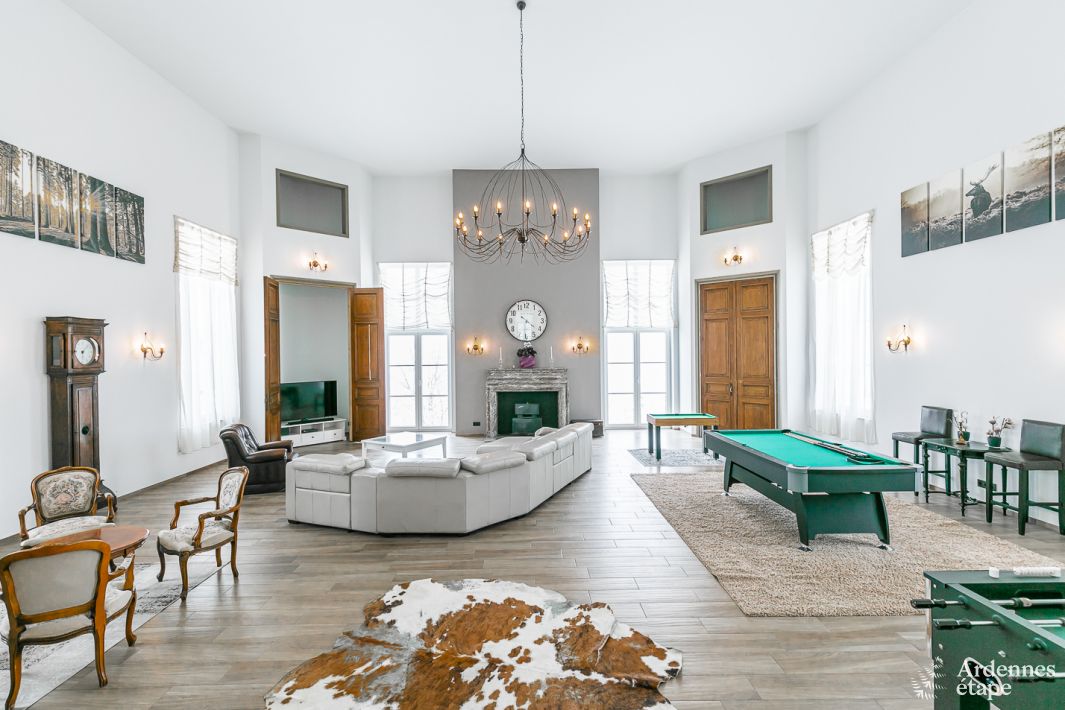 Je voelt je baron en barones in dit fantastische vakantiehuis! Tijdens ons verblijf bezochten we 3 kastelen en tot onze verbazing waren de plafonds daar lager dan in onze vakantiewoning. We genoten van een heerlijke vakantie met 10 volwassenen en genoten van het biljarten in de living. Enig klein minpuntje is dat de kamer met stapelbedden niet echt geschikt is voor volwassenen, dat er beneden 1 slechte matras was en de tuin niet rechtstreeks toegankelijk vanuit het huis maar dit is een detail.