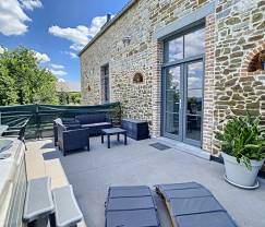 Sie wohnen im Nebengebäude eines Schlosses und genießen daher einen wunderschönen Außenbereich. Neben Ihrer privaten Terrasse mit Whirlpool können Sie einen herrlichen Obstgarten nutzen. Und wenn Sie mit Ihrem Pferd kommen, stehen Ihnen Boxen zur Verfügung (auf Anfrage und gegen Aufpreis).