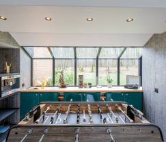 Das Haus ist mit einer Reihe von Einrichtungen ausgestattet, um Ihren Aufenthalt so angenehm wie möglich zu gestalten. Für die Kinder gibt es eine Schaukel und einen Tischfußball, und für die Erwachsenen gibt es einen Holzkohlegrill. Das Haus verfügt auch über einen gesicherten Fahrradkeller, ideal für Fahrradliebhaber. Und nach einem langen Tag voller Aktivitäten können Sie sich am Kassettenkamin entspannen.
