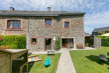 12 Personen können hier gemeinsam einen Aufenthalt auf dem Land verbringen. Das schöne Anwesen in Beauraing, im Herzen der Ardennen, ist eine wunderbare Oase der Ruhe. Genießen Sie die fabelhafte Umgebung im großen Garten, wo Sie sich beim Boulespiel und Tischtennis vergnügen oder auf der Terrasse gemütlich miteinander grillen können. Auch der Innenbereich bietet reichlich Gelegenheit für Erholung, Spaß und Spiel: Sie verfügen über einen Wellnessbereich, der über die Außenseite zugänglich ist, sowie über einen Billard- und einen Kickertisch im großen Wohnraum. Dieses geräumige Zimmer besticht durch seinen authentischen und gemütlichen Charakter, der durch die rustikale Einrichtung und das wunderschöne Deckengewölbe unterstrichen wird. In der voll ausgestatteten Küche mit Essbereich können Sie meisterliche Speisen für die ganze Familie zubereiten und genießen. Im Obergeschoss befinden sich 5 Schlafzimmer, vier davon mit eigenem Bad. Das fünfte Schlafzimmer, das mit 4 Etagenbetten ausgestattet ist, eignet sich perfekt für die Kinder. Zum Parken steht Ihnen ein Parkplatz mit 6 Stellplätzen zur Verfügung.