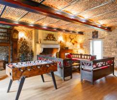 12 Personen können hier gemeinsam einen Aufenthalt auf dem Land verbringen. Das schöne Anwesen in Beauraing, im Herzen der Ardennen, ist eine wunderbare Oase der Ruhe. Genießen Sie die fabelhafte Umgebung im großen Garten, wo Sie sich beim Boulespiel und Tischtennis vergnügen oder auf der Terrasse gemütlich miteinander grillen können. Auch der Innenbereich bietet reichlich Gelegenheit für Erholung, Spaß und Spiel: Sie verfügen über einen Wellnessbereich, der über die Außenseite zugänglich ist, sowie über einen Billard- und einen Kickertisch im großen Wohnraum. Dieses geräumige Zimmer besticht durch seinen authentischen und gemütlichen Charakter, der durch die rustikale Einrichtung und das wunderschöne Deckengewölbe unterstrichen wird. In der voll ausgestatteten Küche mit Essbereich können Sie meisterliche Speisen für die ganze Familie zubereiten und genießen. Im Obergeschoss befinden sich 5 Schlafzimmer, vier davon mit eigenem Bad. Das fünfte Schlafzimmer, das mit 4 Etagenbetten ausgestattet ist, eignet sich perfekt für die Kinder. Zum Parken steht Ihnen ein Parkplatz mit 6 Stellplätzen zur Verfügung.