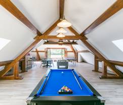 Ein erfrischendes Bad im Indoorpool, ein köstliches Frühstück auf der Terrasse mit atemberaubendem Blick auf die grüne Natur, ein privater Wellnessbereich mit Sauna und Whirlpool für Entspannung pur… In diesem einzigartigen und prachtvollen Schloss aus dem Jahre 1658 erleben Sie den ultimativen Luxus! Hier gibt es für Jung und Alt alles, was das Herz begehrt, um sich zu erholen. Unser persönliches Highlight? Der wunderbare Spielplatz dieses eindrucksvollen Anwesens, von dem Ihre Kinder begeistert sein werden! Lassen Sie den Tag bei einem Glas Wein und einer guten Portion Geselligkeit an der Bar oder am Kamin ausklingen. Liefern Sie sich eine Partie Tischkicker, Airhockey, Billard oder Dart, bevor Sie sich in eines der eindrucksvollen Schlafzimmer zur Ruhe begeben.
