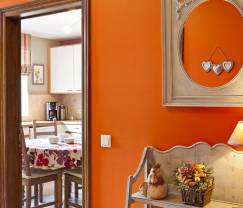 Das Aussengelände des Dorfhauses blüht malerisch. Der private und eingezäunte Bereich umfängt eine private Terrasse mit Gartenmöbeln sowie einem Grill für schöne Abendstunden mit Ihren Gästen. Vor dem als Ferienhaus saniertem Bauernhaus befinden sich 4 private Parkplätze.