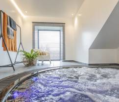 Für die ultimative Entspannung stehen ein beheiztes Innenpool, eine Infrarotkabine und ein Whirlpool zur Verfügung. Diese Einrichtungen ermöglichen es, das ganze Jahr über einen erholsamen Urlaub zu genießen, unabhängig vom Wetter. Der Entspannungsraum bietet auch einen Billardtisch, Tischfußball und Kinderspiele für stundenlangen Spaß für Jung und Alt.