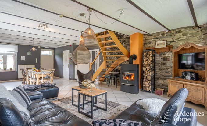 Dieses prachtvolle Ferienhaus bietet alle Annehmlichkeiten für einen Urlaub mit der Familie oder mit Freunden in der schönen Region der Ardennen. Ganz in der Nähe der Schieferstadt Bertrix gelegen, beherbergt es 5 Schlafzimmer und 2 Badezimmer, die über die 2 Geschosse des Hauses verteilt sind. Im Erdgeschoss verfügen Sie über einen großen, überaus einladenden und gemütlichen Wohnbereich mit Natursteinmauern. Die offene Küche ist sehr komfortabel und umfassend ausgestattet, ideal für die Zubereitung Ihrer Lieblingsrezepte. Genießen Sie Ihre Mahlzeiten in geselliger Familienrunde im Esszimmer, bevor Sie es sich in einem der bequemen Sessel im Wohnzimmer gemütlich machen. Sobald die Tage wärmer werden, laden die Außenbereiche dazu ein, sich in dieser herrlichen Kulisse der grünen Naturlandschaften auszuruhen. Während sich die Kinder in dem großen Gemeinschaftsgarten austoben, können Sie den Grill vorbereiten und die kostbaren Momente mit der Familie in dieser erholsamen Umgebung genießen.