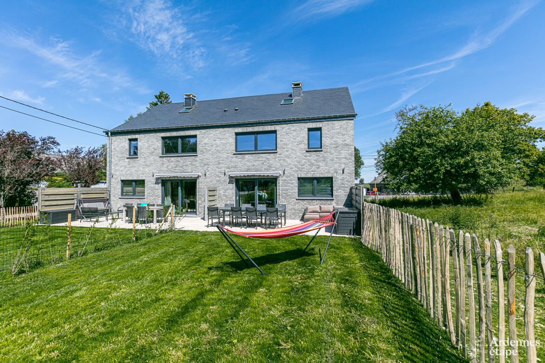 Geräumiges 3-Sterne-Ferienhaus (4 Schlafzimmer, 2 Bäder) mit Sonnenterrasse. Wandermöglichkeiten in der unmittelbaren Umgebung! $µ Ausschlafen, ein Brunch mit lokalen Erzeugnissen auf der Terrasse , ein anregender Spaziergang durch den nahe gelegenen Wald, ein gutes Buch lesen, während die Kinder im Garten herumtollen, ein Spieleabend oder ein Dartturnier… Eine Woche oder ein Wochenende in...