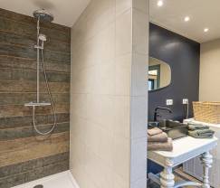 Wenn Sie einen Ort mit Seele suchen, werden Sie dem Charme dieses gemütlichen Ferienhauses erliegen, in dem die Eigentümerin bewusst aufgearbeitete Möbel eingesetzt hat, um ihnen ein zweites Leben zu geben. Ein gewagtes und gelungenes Unterfangen, dank der so entstanden Harmonie und der Ergänzung durch moderne Elemente, wie beispielsweise im Badezimmer. Der Tapetenmix an den Wänden macht das Ferienhaus zu etwas ganz Besonderem und verleiht ihm eine gemütliche und intime Atmosphäre.