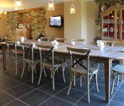 2 gîtes jointifs dont la pièce de vie est un peu petite pour 21 adultes désirant manger dans la même pièce, chambres et SDB adaptées plutôt à 18 adultes et quelques enfants plutôt que 21 adultes car 2 chambres avec lits superposés, cuisine équipée, belles terrasse et jardin, le billard est un réel plus