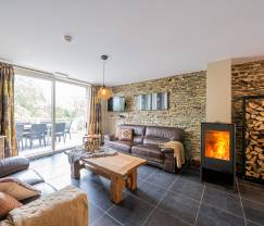 Dieses Ferienhaus setzt sich aus mehreren Unterkünften zusammen, aber das Wohnzimmer bietet genügend Platz, um darin gemeinsam zu essen.