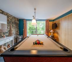 Het verblijf was netjes en groot. Er zijn wat kleine zaken zoals bijvoorbeeld de krappe ruimte bij de pooltafel, maar desondanks hebben wij er goed gebruik van gemaakt. Alles wat je nodig hebt is aanwezig. Het is allemaal wat gedateerd qua stijl, maar dat vonden wij niet belangrijk en past ook bij het type dorpje waar deze woning in gevonden kan worden.