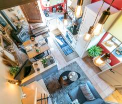 Een klein maar zeer gezellig en knus verblijf. Voor 2 personen precies goed alleen hadden wij een vrij grote hond erbij dus was het af en toe een beetje passen en meten maar uiteindelijk best te doen. Open haard was heerlijk alleen moet je er welvoor zorgen dat hij op tijd uit is want je slaapt boven ( het is open) dus alle warmte gaat naar boven waardoor het dan erg warm kan worden om te slapen maar wel heel leuk zo slapen in de nok.