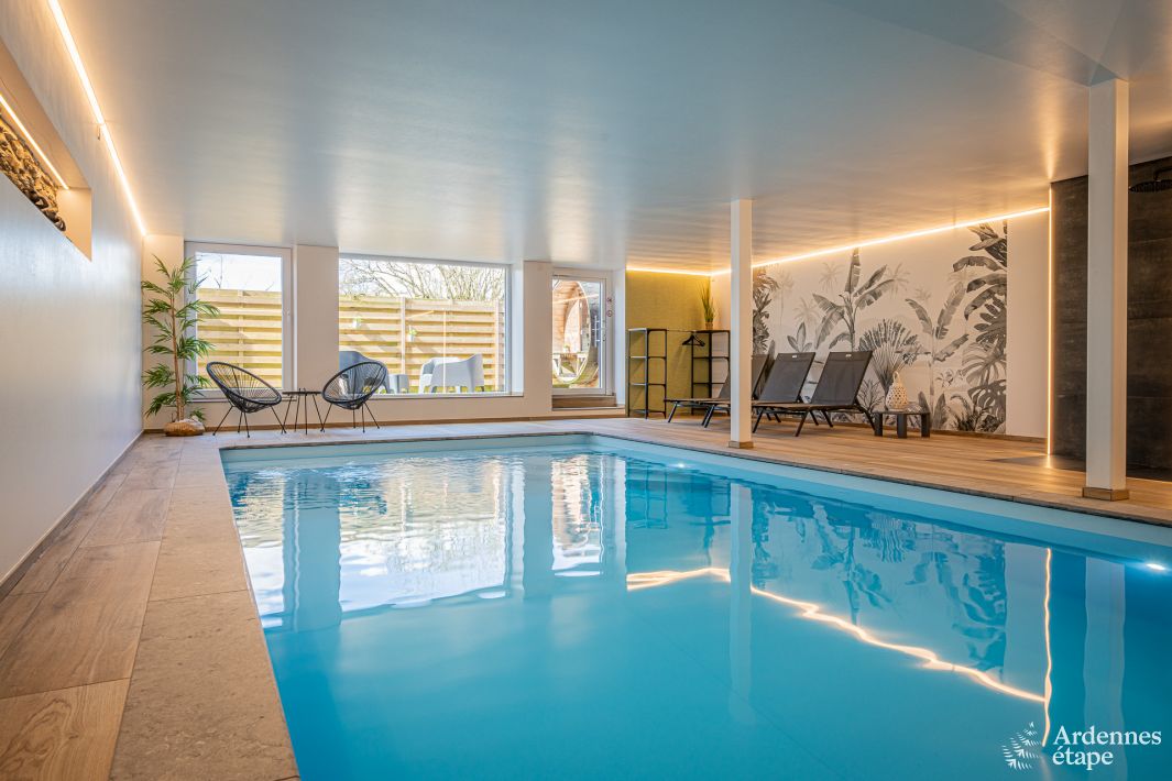 Willkommen in diesem wunderschönen Ferienhaus in Bertrix, einem Ort, an dem Komfort und Luxus Hand in Hand gehen. Dieses Haus ist die perfekte Wahl für Freundesgruppen oder Familien mit Kindern, die einen unvergesslichen Urlaub in den Ardennen suchen. Stellen Sie sich vor, Sie beginnen den Tag mit einem Sprung in das Indoor-Schwimmbad , gefolgt von einer entspannenden Sitzung...
