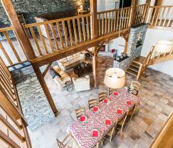 Dieses große Haus aus regionalem Naturstein beeindruckt durch sein reizvolles Interieur mit hohen Decken und freiliegenden Holzbalken. Die Allgegenwäritgkeit von Holz und Stein verleiht diesem Ferienhaus einen entschieden rustikalen Charme, und sein ursprünglicher Charakter wird durch die raffinierte Dekoration hervorgehoben.