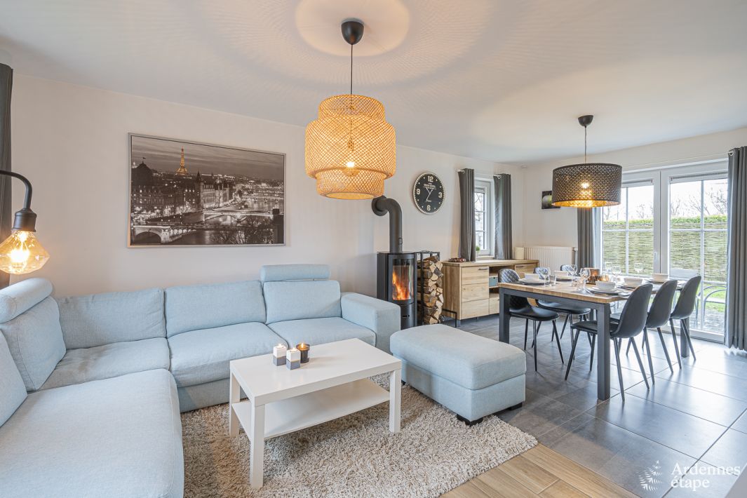 Entscheiden Sie sich mit diesemhellen und reizvollen Ferienhaus in Bièvre für eine attraktive und sehr funktionsorientierte Unterkunft für 6 Personen. Hier wird sich die gesamte Familie willkommen fühlen, denn auch Ihr treuer vierbeiniger Freund darf mit Ihnen die Ruhe und die Natur der Ardennen genießen! Da es über ein separates Spielzimmer, eine Tischtennisplatte, einen Tischkicker und alles verfügt, was (Groß-)Eltern, die mit einem Baby reisen benötigen - darunter ein Reisebett, ein Hochstuhl und eine Wickelauflage - ist es wirklich das ideale Ferienhaus für einen entspannten Familienurlaub. Nehmen Sie sich Zeit für ein ausgedehntes gemeinsames Frühstück, genießen Sie vom Whirlpool aus den entspannenden Blick auf die umliegenden Wiesen, während die Kinder und der Hund im Garten toben, und organisieren Sie einen netten Spieleabend am Kamin. Ist es nicht der Gipfel des Luxus, Zeit seinen Lieblingsmenschen zu verbringen?