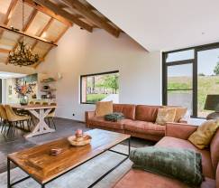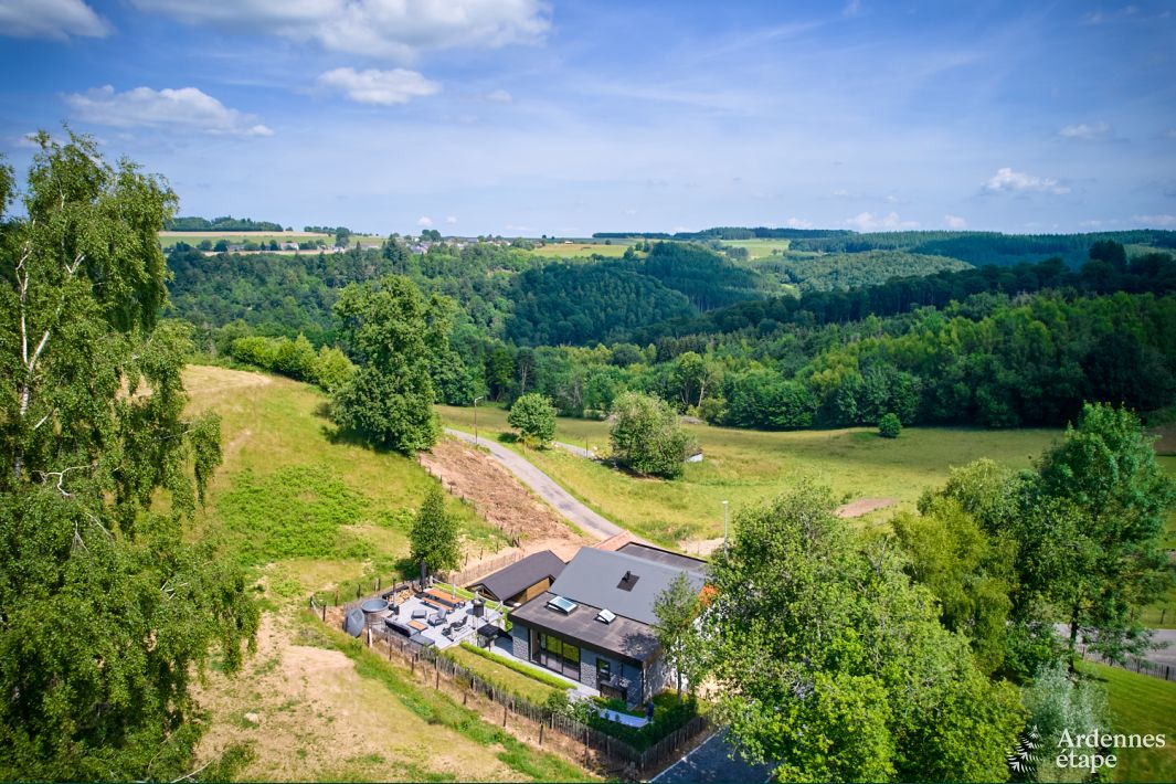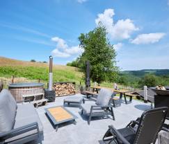 Die Lage dieses Ferienhauses ist besonders ruhig, mit einem wunderschönen Blick über das Tal. Das macht es zum idealen Ort, um vollkommen zur Ruhe zu kommen. Ob man nun drinnen im gemütlichen Wohnzimmer sitzt oder draußen auf einer der Terrassen, die Natur ist immer nah und sorgt für eine beruhigende Atmosphäre.