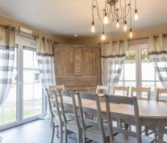 In der sehr gut ausgestatteten Küche lässt sich gut und gesellig ein leckeres Essen zubereiten. Der Wohnbereich umfasst ein Esszimmer und ein komfortables Wohnzimmer mit Holzofen.
