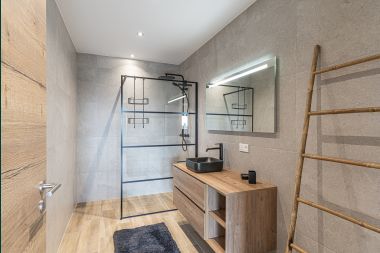 Im Erdgeschoss der Unterkunft befindet sich mindestens der Wohnbereich, ein Schlafzimmer, ein WC und ein Badezimmer. Einige Stufen zum Zugang zur Unterkunft sind weiterhin möglich.