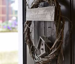 Das Haus liegt in einem Dörfchen. Sie hören Geräusche des Landlebens, in Gärten spielende Kinder…