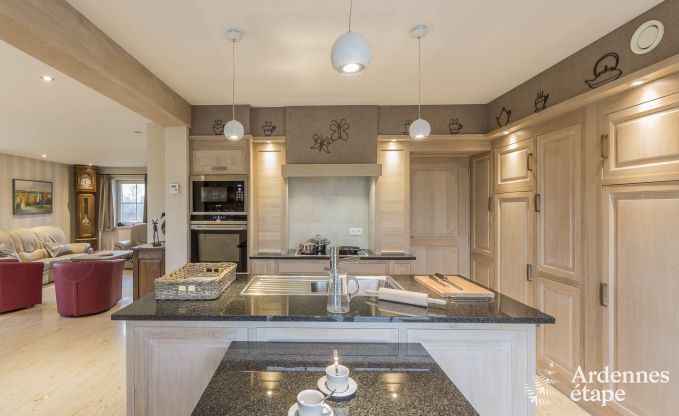 Wie soll man diesem Neubau widerstehen, der den Charme eines alten Anwesens nach Art der Ardennen besitzt? Die verwendeten hochwertigen Baustoffe sind tadellos verarbeitet . Der große, einladende Gemeinschaftsraum eignet sich wunderbar für unvergessliche Abende in geselliger Runde und gemeinsame Mahlzeiten . Diese lassen sich in der hervorragend ausgestatteten Küche...